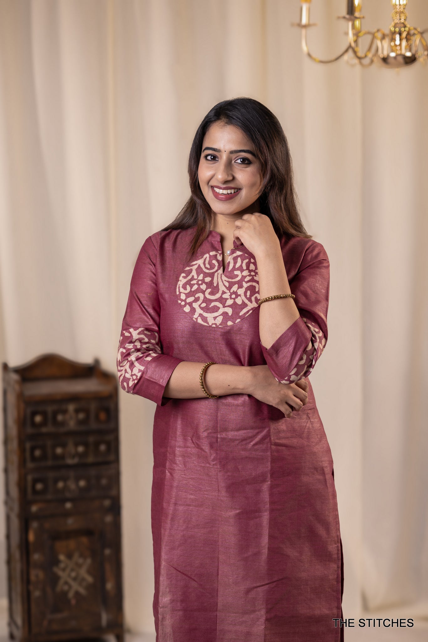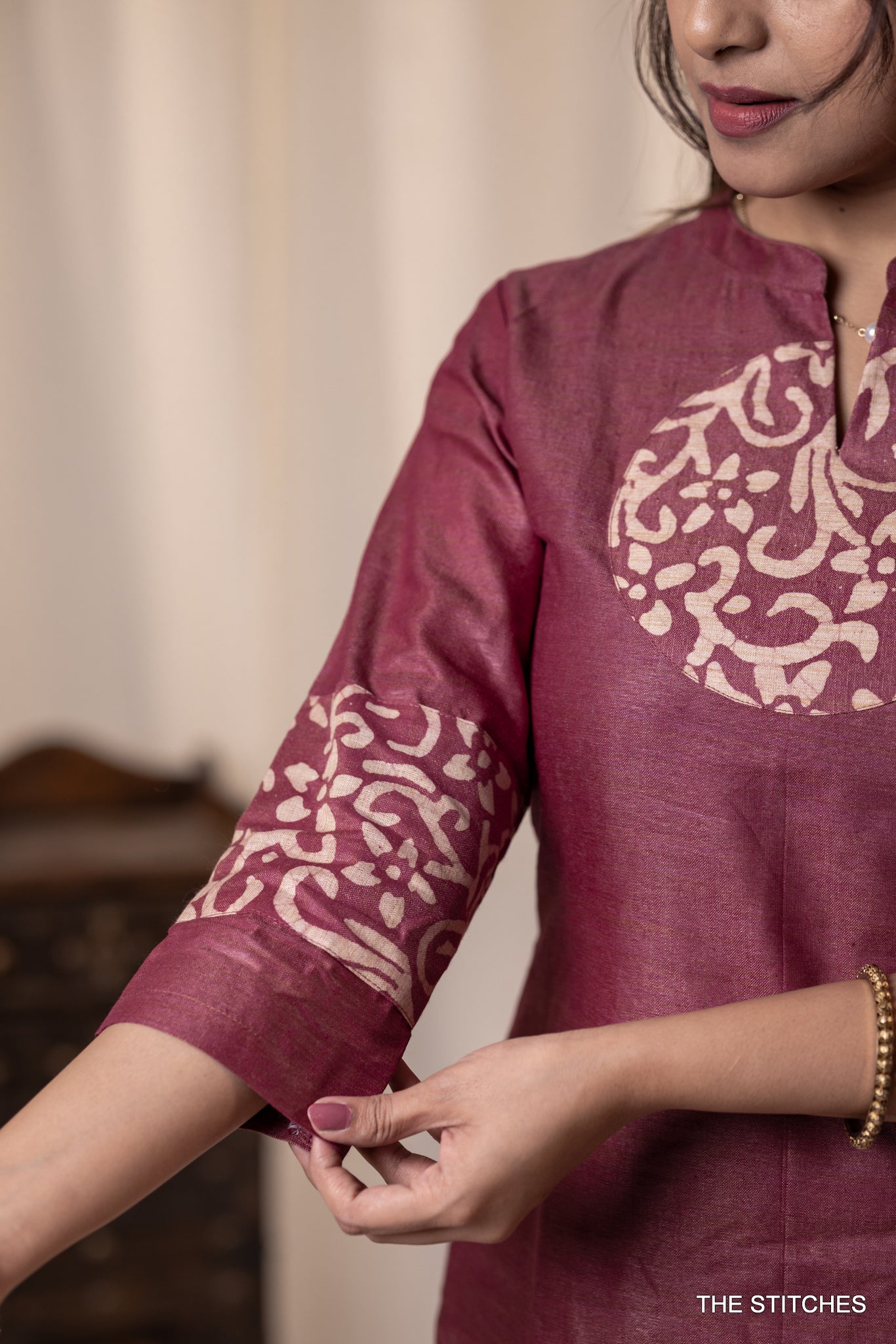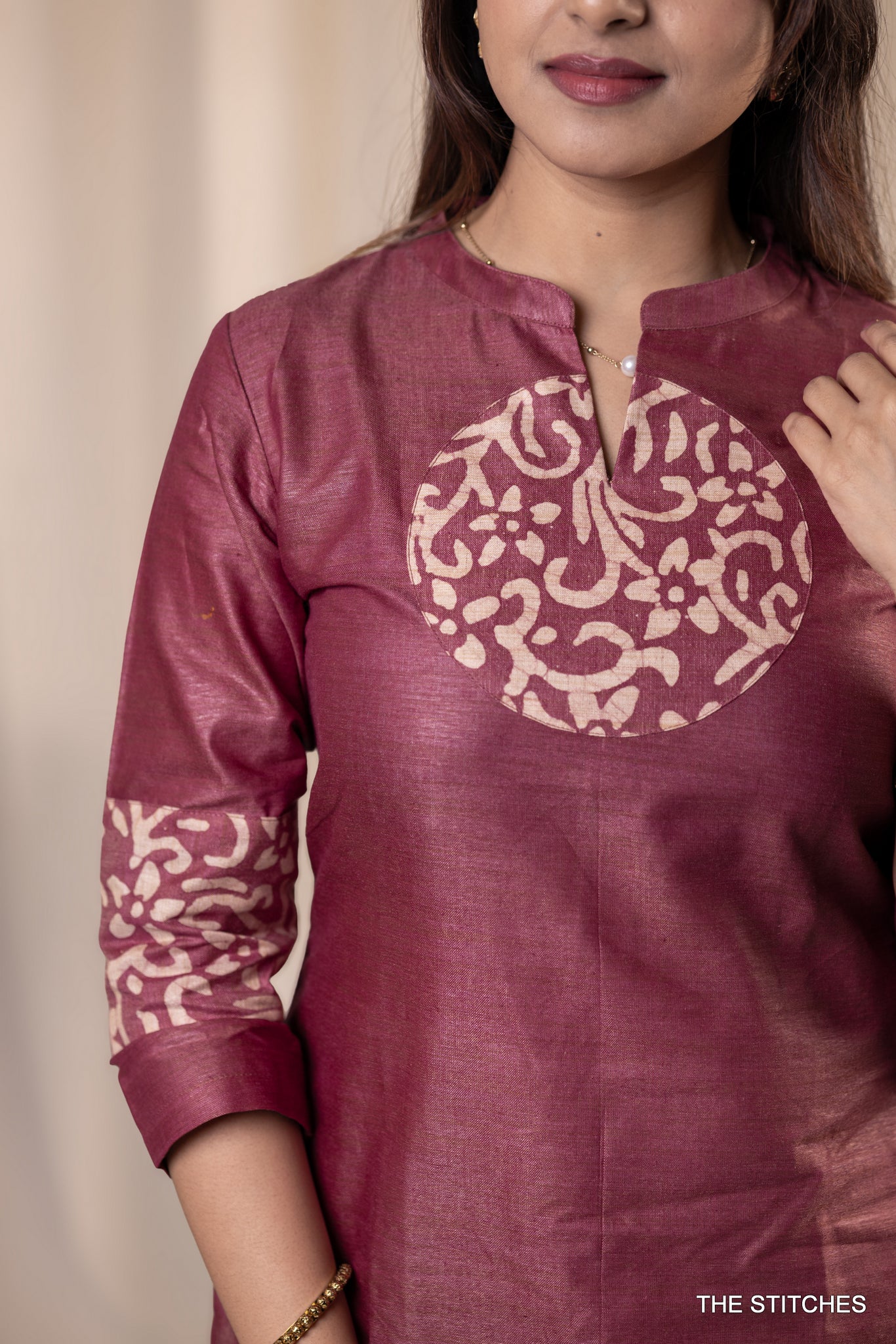 The NIA Set - Magenta showcases a sophisticated kurti featuring an elegant printed round patch.