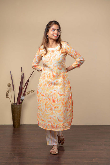 Paisley print Semi Linen (Mustard) - KURTI ONLY