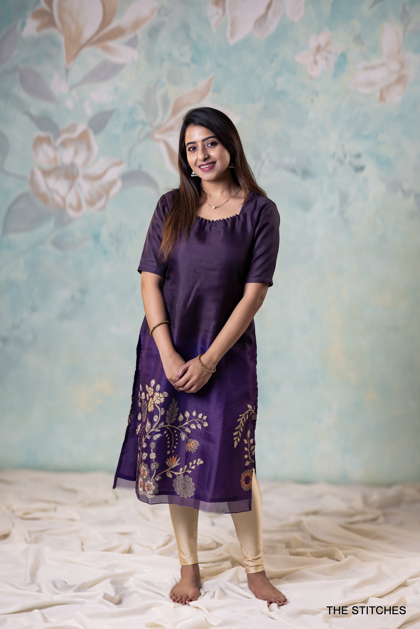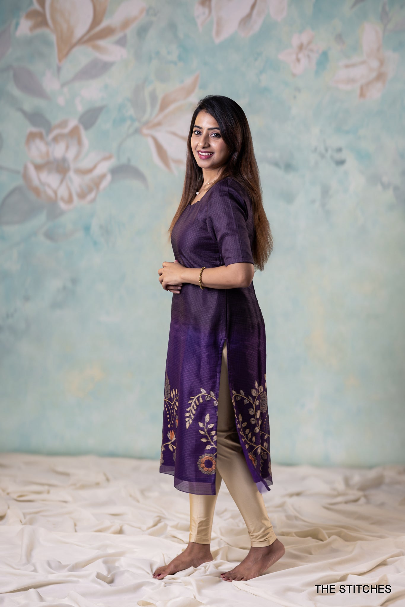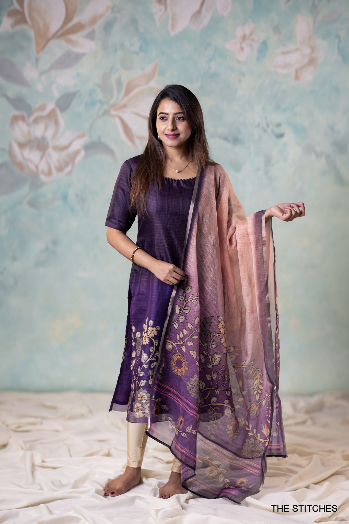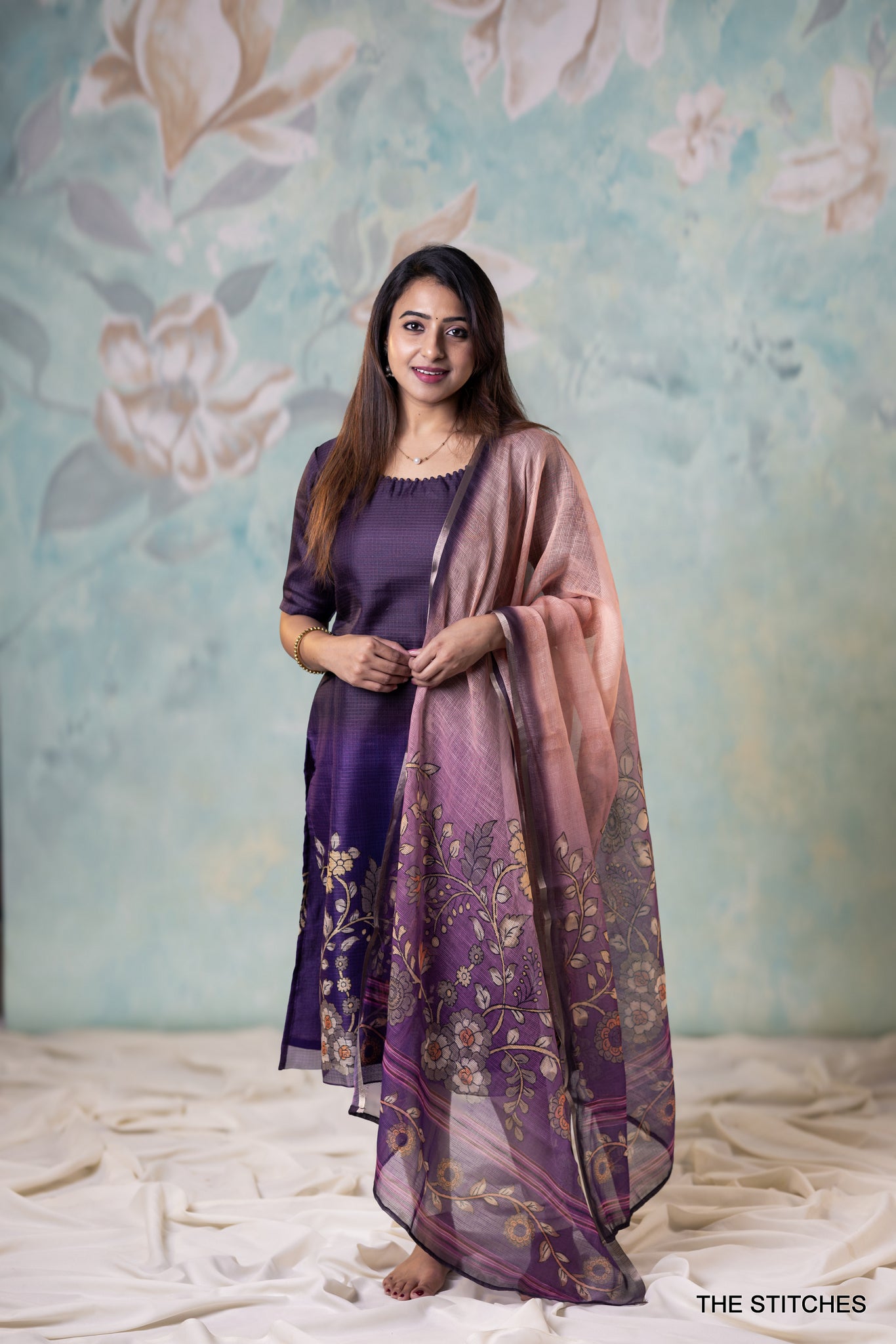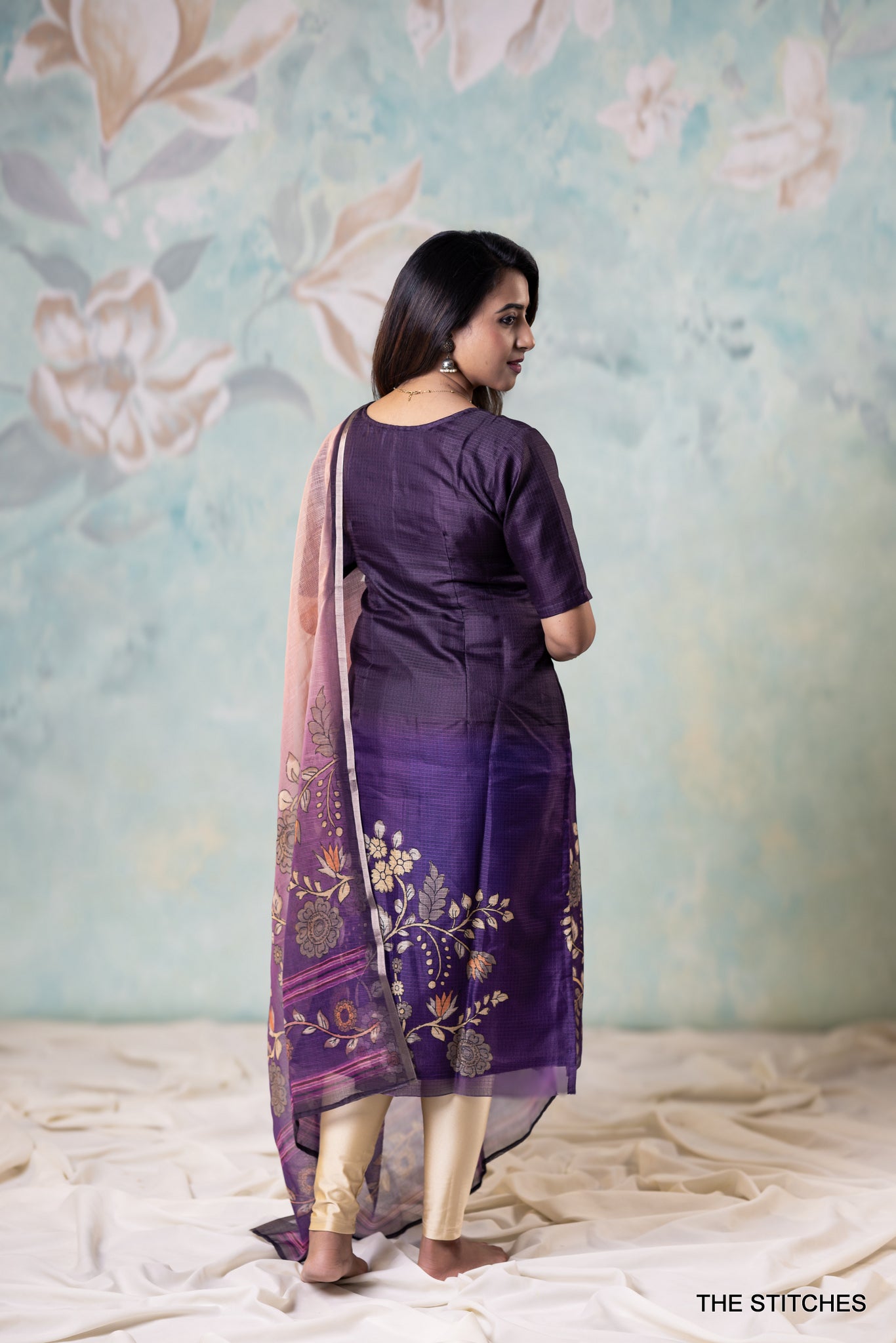 This ANIKA Kurti - Purple features an elegant ombre kota fabric, paired with a matching dupatta.