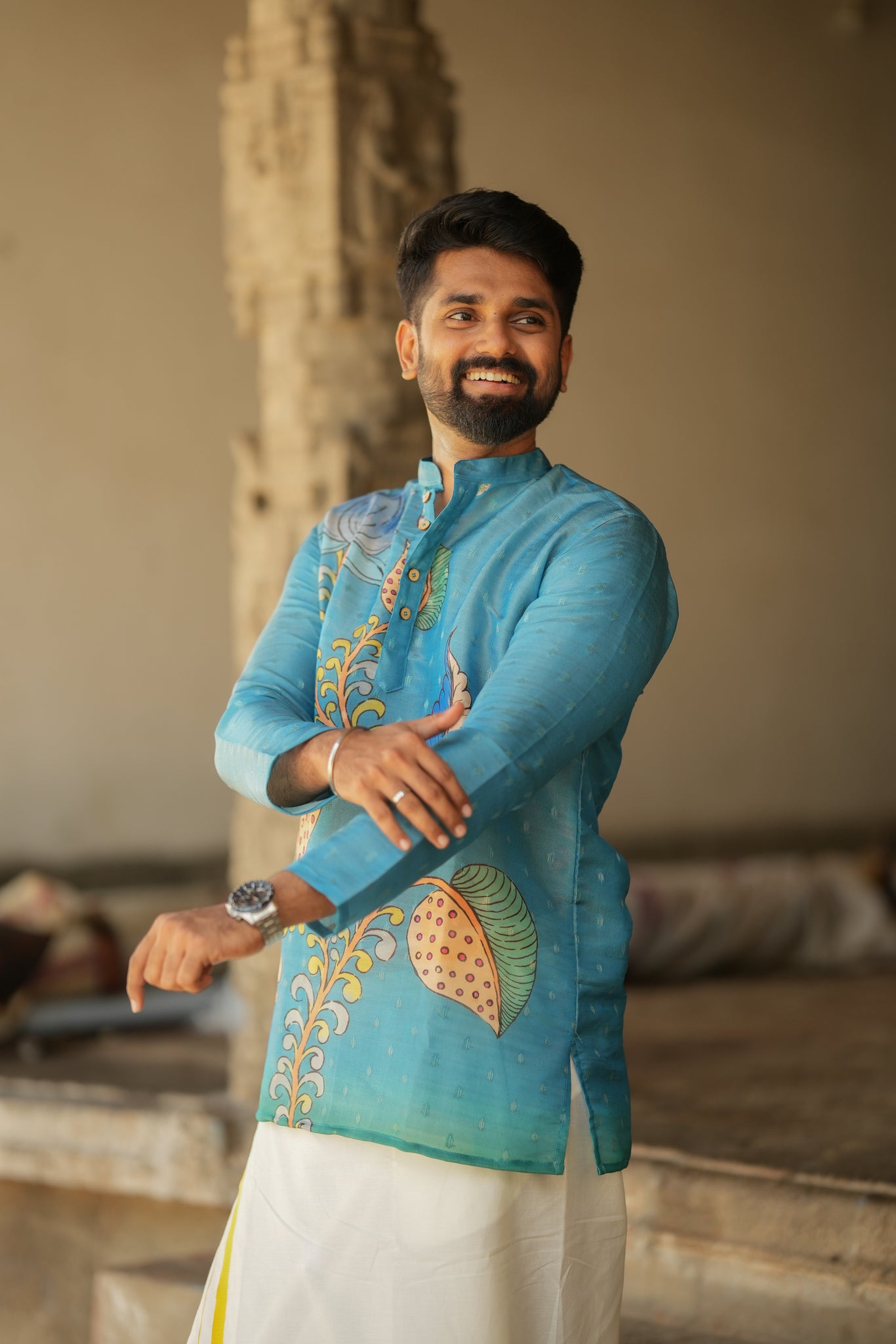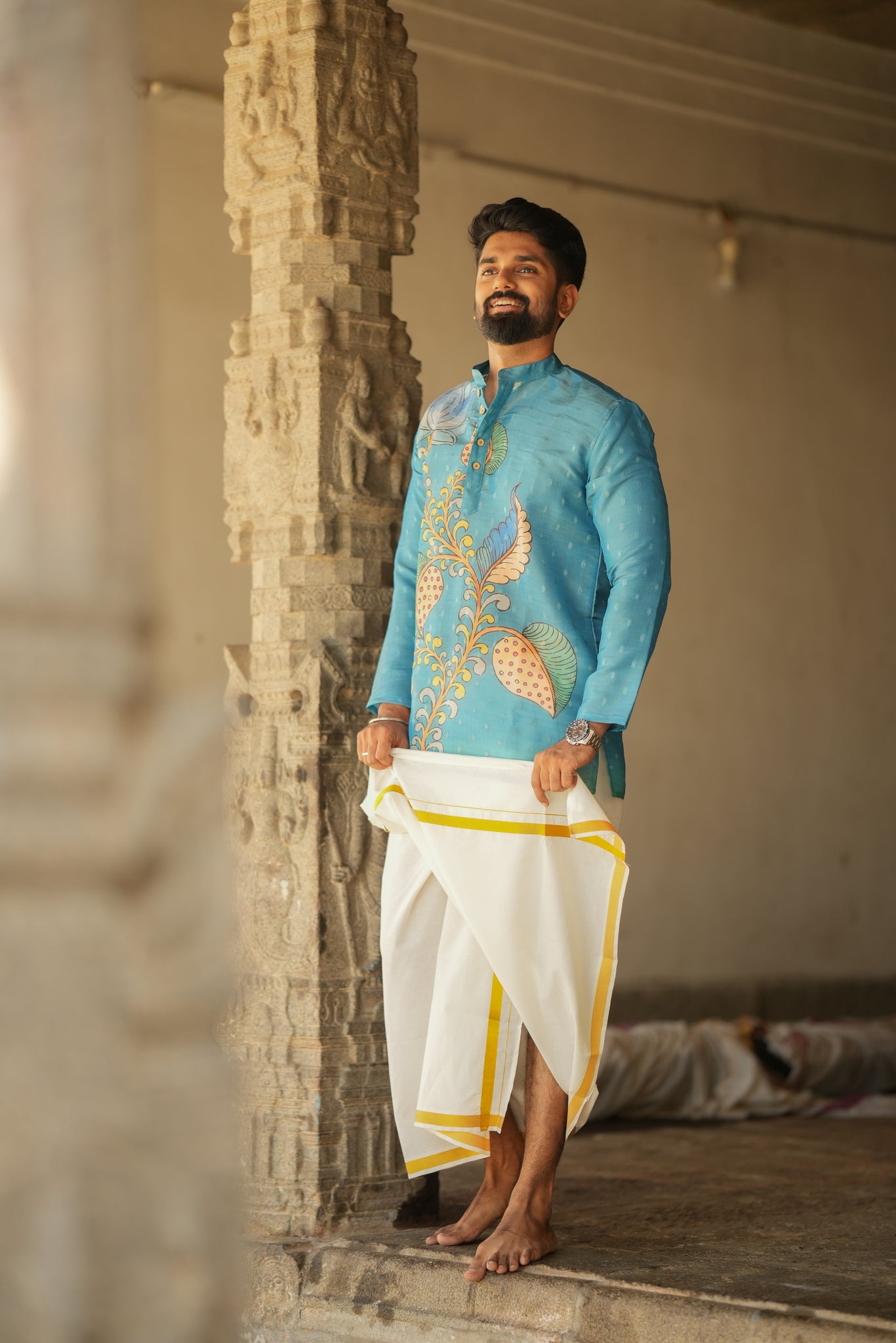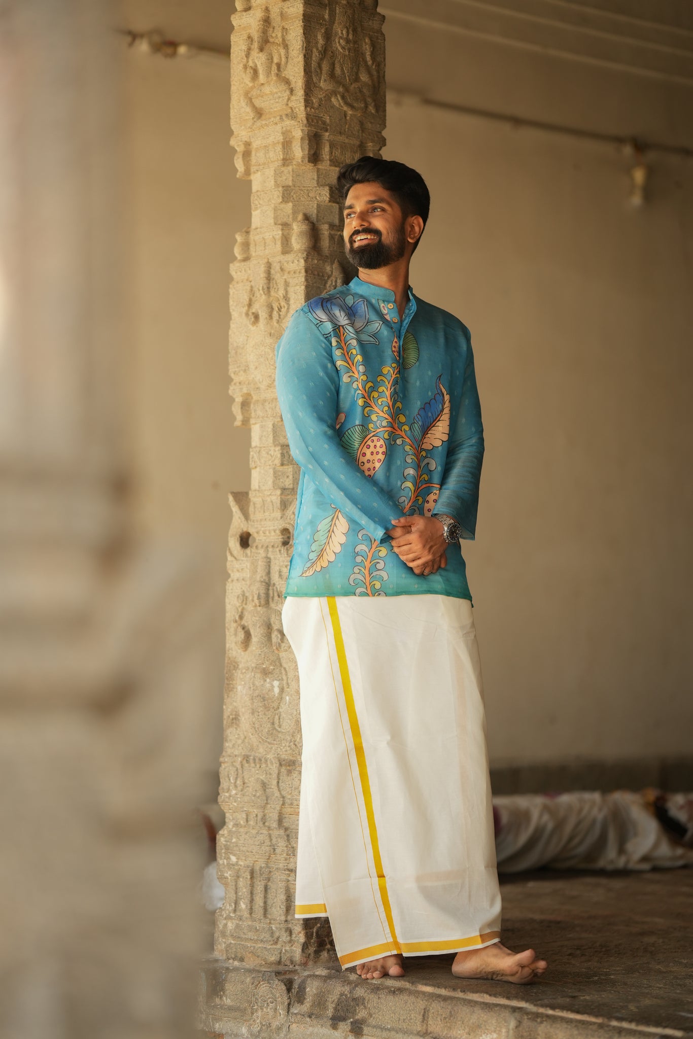 This Kurta brings you an elegant traditional look can pair with veshti.
